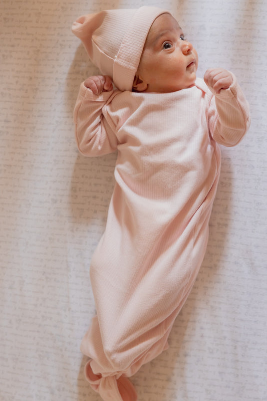 Knotted Gown and Beanie - Delicate Pink