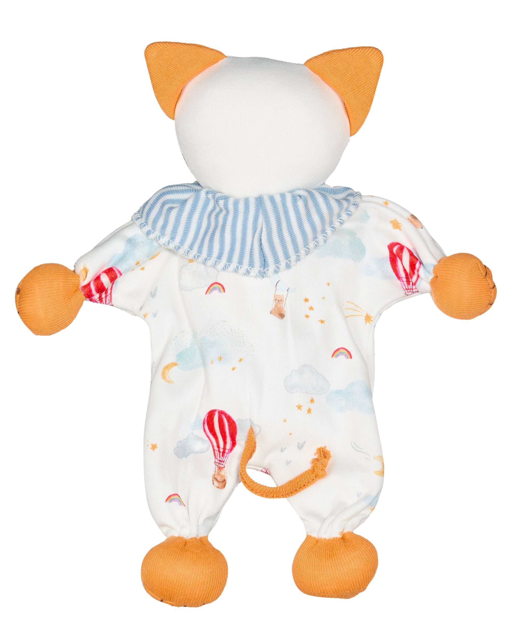 This sweet kitty lovey toy will quickly become a cherished friend for your little one. Perfectly sized for tiny hands to grasp and snuggle, its soft, flat design makes it an ideal companion for playtime and naptime alike. The head, paws, and feet are gently stuffed with pure organic cotton, offering delightful textures for curious fingers to explore.